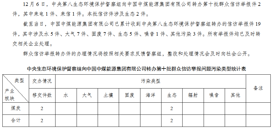 中央第八生态环境保护督察组向中国永利澳门wynnmacau能源集团有限公司转办第十批群众信访举报件